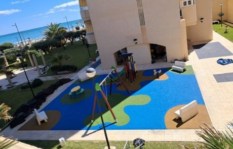 ALITEKFLEX PAVIMENTO DE SEGURIDAD diseña parques infantiles en función de las necesidades en el que se mueve el niño, uniendo e integrando los pavimentos con el entorno que se encuentran y adaptando la distribución y el diseño de los propios juegos y aparatos a las diferentes edades.